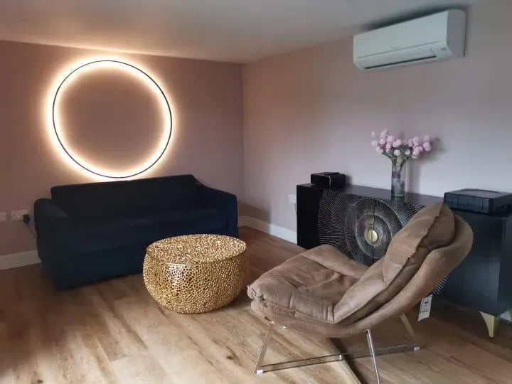 I absolutely love this light! Installing it was incredibly simple, and it has transformed my living room into a much cozier and more welcoming space. The LED lighting is so efficient, hardly affects my power bill, and emits the most soothing warm glow. The minimalist design fits perfectly with our decor, and it doesn’t overwhelm the space at all. Definitely a great purchase!